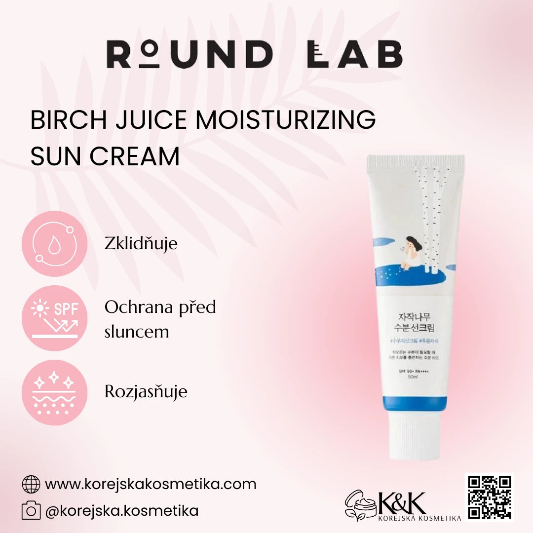 Přípravek obsahuje Round Lab – Birch Juice Moisturizing Sun Cream 50ml